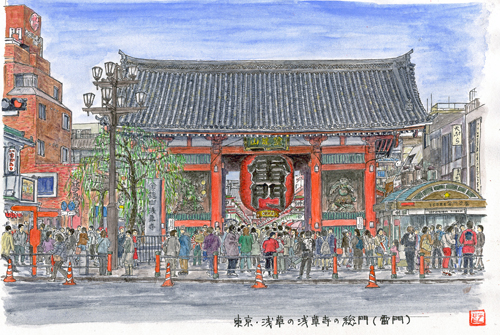 雷門の周辺の絵は今迄に何度か描きましたが、これは2010年頃に描いたものです。